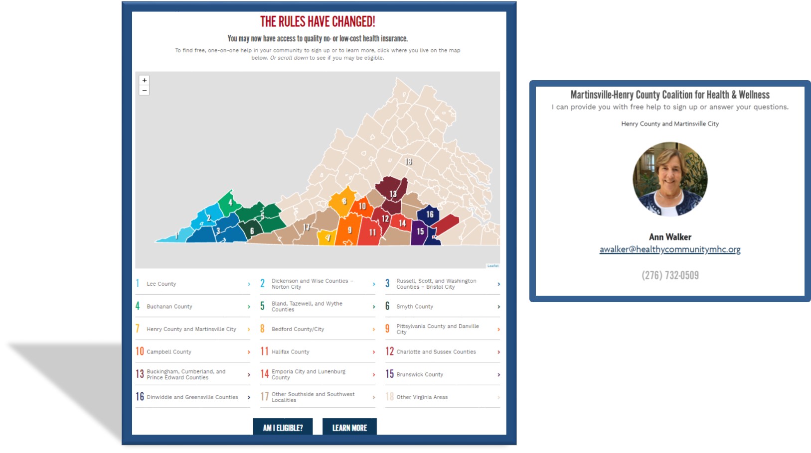 All of these marketing components lead potential applicants to a special website where they can get connected with the Outreach Worker in their locality or find the Cover Virginia website.